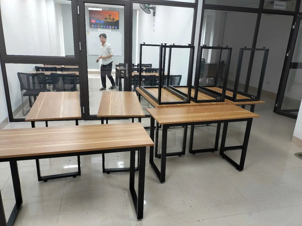 Chất liệu: Khung chân bàn làm từ sắt hộp  30x30. Mặt và yếm bàn làm từ gỗ công nghiệp melamine, đảm bảo tính thẩm mỹ và độ bền cao.